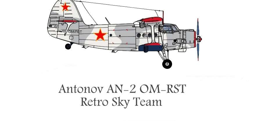 Antonov AN-2 je sovietsky jednomotorový, vzperový dvojplošník. Antonov AN-2 vychádzal zo sovietskeho stroja Polikarpov PO-2. Prototyp An-2 vzlietol v roku 1947. Celkovo bolo vyrobených 18000 kusov. Pohonnou jednotkou je motor Švecov AŠ-62 IR s výkonom cez 1000 koní. Antonov AN-2 je najväčšie jednomotorové lietadlo na svete. Antonov AN-2 OM-RST je v prevedení TD čo je výsadková verzia pre 12 výsadkárov. K jeho prednostiam patrí krátky vzlet a možnosť operovať na nezpevnených plochách. V roku 2010 bolo lietadlo nanovo nalakované do ruských farieb.